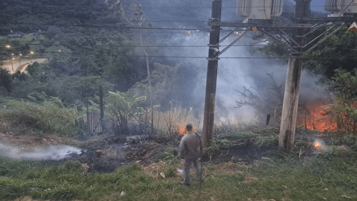 Uma vegetação, às margens da Rodovia dos Tamoios, foi atingida por um incêndio no início da noite desta segunda-feira (23), em Caraguatatuba, no Litoral Norte de São Paulo. A área atingida pelas chamas foi de aproximadamente 400 metros quadrados