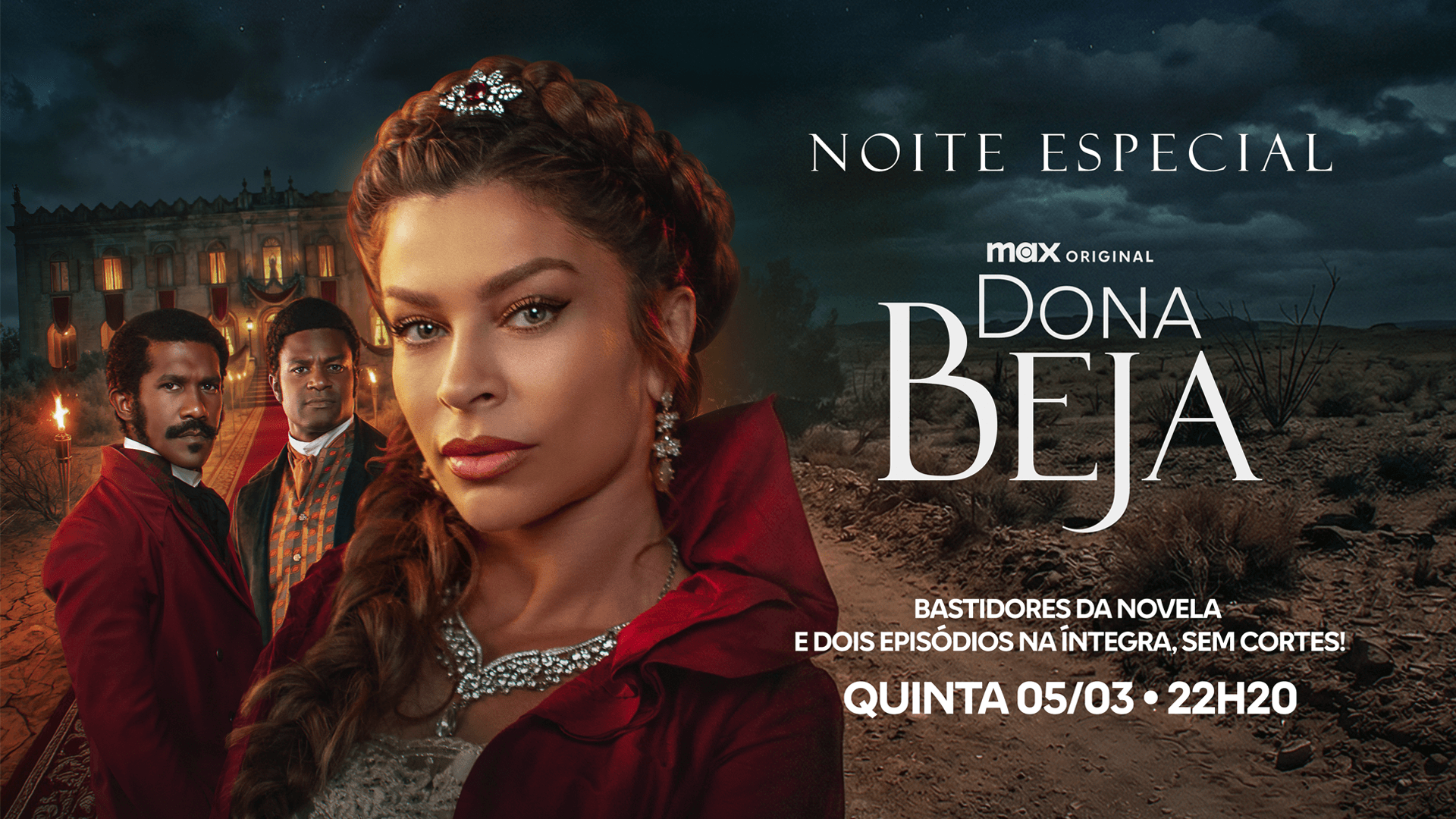 A Band promove na próxima quinta-feira (5), às 22h20, uma Noite Especial Dona Beja para celebrar a chegada da novela com selo Max Original à emissora. A atração, comandada por Chris Flores e Thiago Pasqualotto , reunirá entrevistas exclusivas, curiosidades e making of. Logo em seguida, às 23h, o canal apresenta um episódio duplo sem cortes .