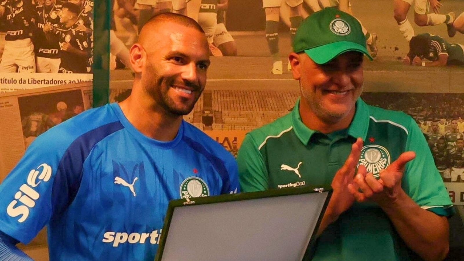 A cerimônia foi realizada nas dependências da Arena Barueri e reuniu dirigentes, atletas e membros da comissão técnica. Ao lado de todas as taças conquistadas ao longo da passagem pelo Verdão, Weverton recebeu palavras de agradecimento da presidente Leila Pereira, que destacou a importância do goleiro para uma das fases mais vencedoras da história recente do clube. Como parte da homenagem, o jogador também foi presenteado com um mural que simboliza os títulos erguidos desde sua chegada, em 2018.