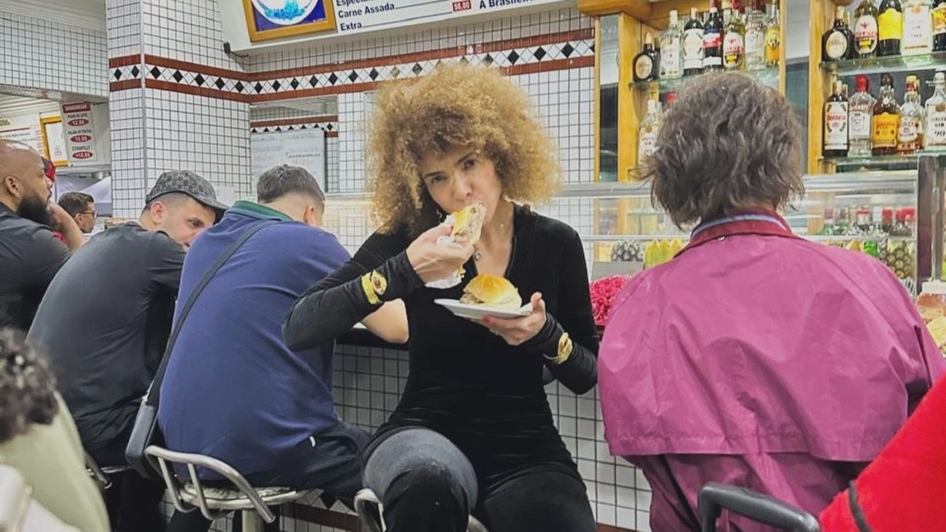 O 'pitdog' é um hambúrguer popular com vários adicionais, como ovo, linguiça, alface, tomate, entre outros ingredientes. Nas fotos compartilhadas pela atriz, é possível ver que ela pediu com batata-palha, tomate, milho, alface, queijo e molhos.