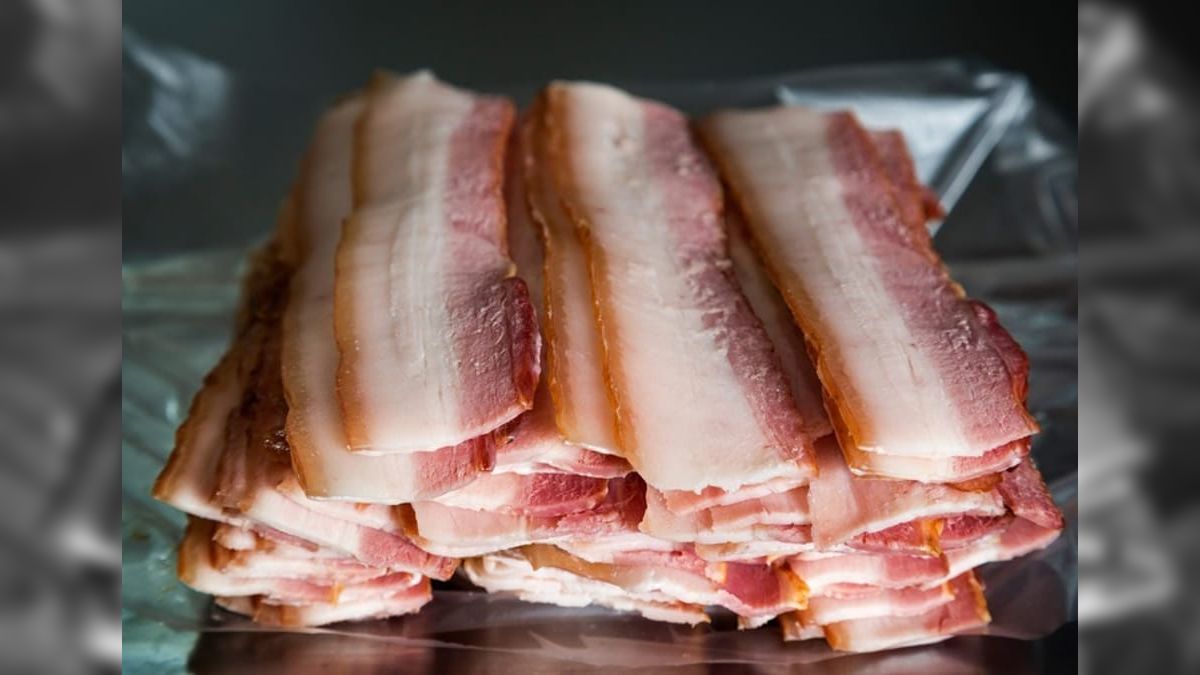 Com as rodelas cortadas e firmes, chega a hora de agregar sabor e cor. Na mesma frigideira ou em uma panela grande, coloque o bacon junto com as rodelas de linguiça para fritar.